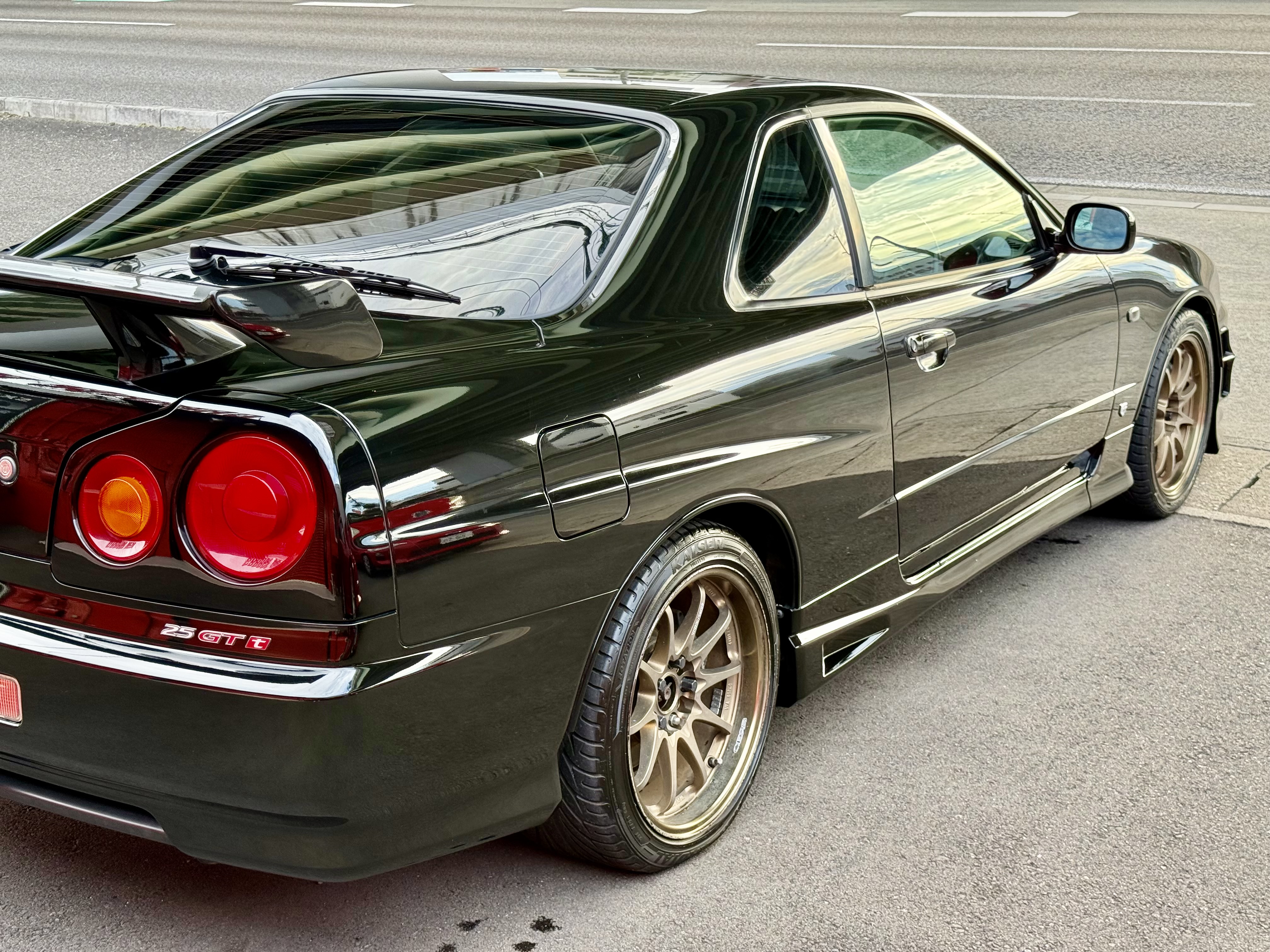SOLD! 06.1998 Nissan Skyline ER34 GT-T GV1 Pearll black color available for sale. Accident free, No rust issues. Pretty clean inside out. No any mechanical issues. She has only 116,991 original kilometers (72,694 miles). GT-Ts have become a lot more requested in the last few months and the prices are beginning to rise. If you are interested, please feel free to reach out to us on whatsapp at +8180 4677 9900 or by email at defendgarage@gmail.com.
