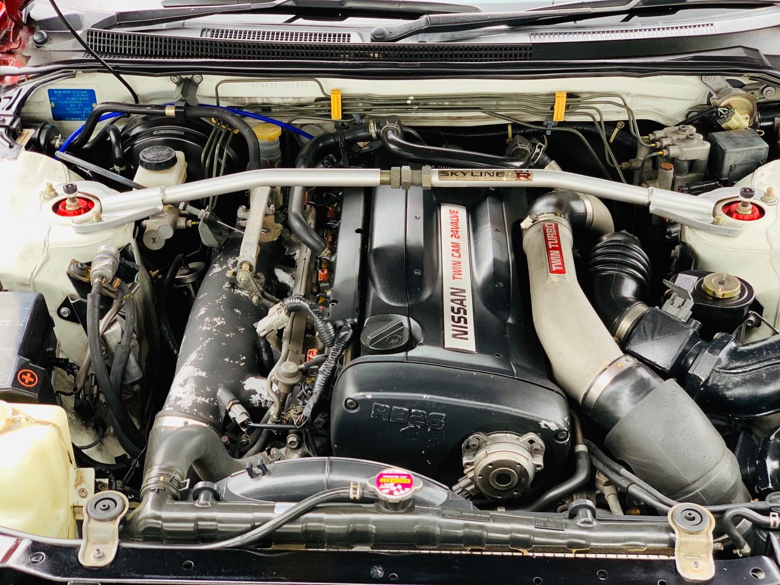 1995 Nissan Skyline GTR R33 available for sale. This one is a February of 1995 so it will be legal for import to the USA in only a few months. The car was originally while but has been repainted to this beautiful wine red color that is accented very well with some nice black aero pieces. There are a few clean modifications to include an awesome sounding exhaust. The cluster has been swapped out to a NISMO 320 KPH cluster and because the swap wasn't done by Nissan the exact KM are unknown but after speaking with the previous owner it is believed to be around 130,000 KM. If you are interested in this GTR please reach out to us on Facebook or by email at defendgarage@gmail.com.