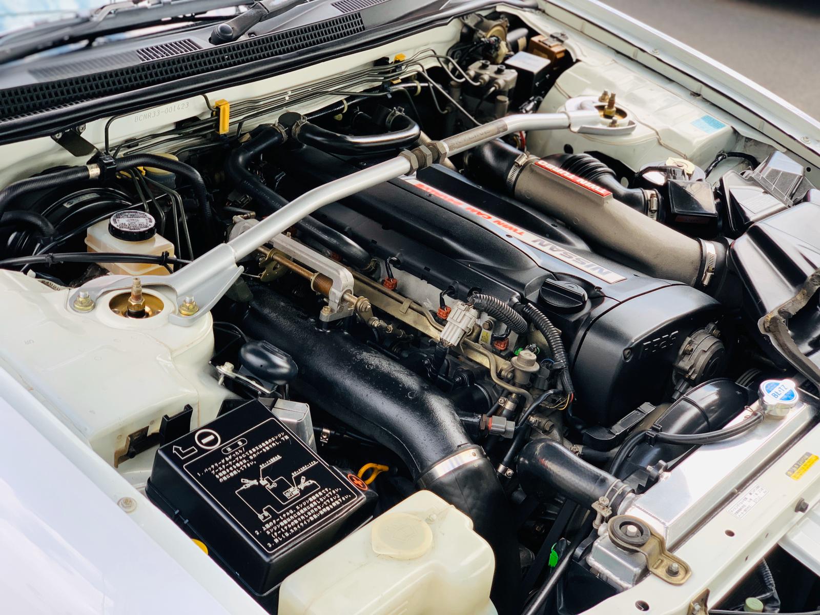 SOLD! Elegant white 1995 Nissan Skyline GTR R33 available for sale. This GTR has been well maintained and is in very nice condition inside and out. It is a February of 1995 GTR so it will be legal for the USA in only a couple short months. Exact mileage is unknown due to not having the document from Nissan showing when the Nismo cluster was swapped in but judging by the condition of the car we believe it to be fairly low mileage. The current white Nismo cluster shows 87,888 kilometers (54,611 miles). The timing belt has also been replaced. If you are in the market for a nice GTR R33 for sale then look no further. For more information and pictures please feel free to send us a message on Facebook or by email at defendgarage@gmail.com.