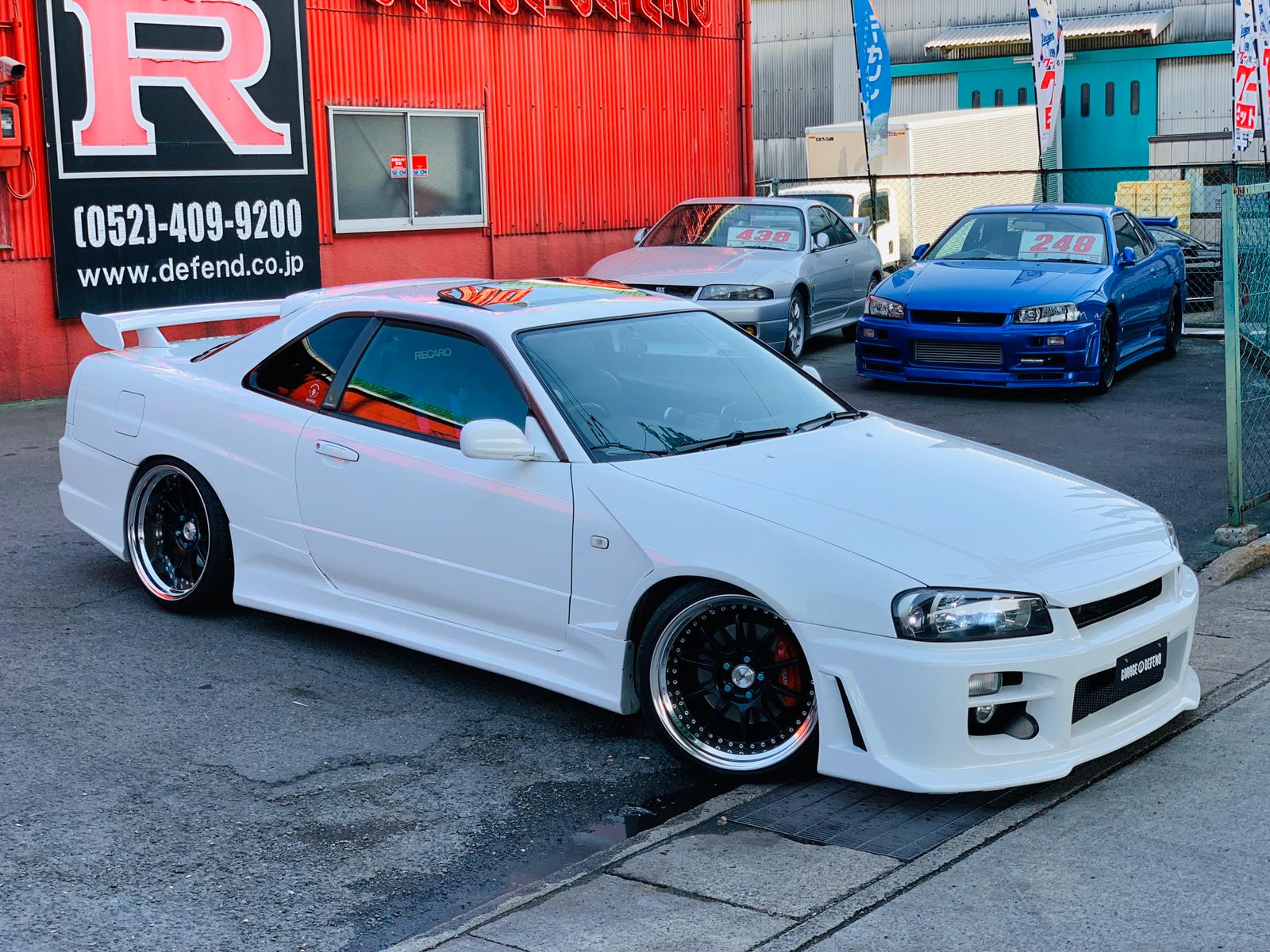 SOLD! Beautiful condition 1999 Nissan Skyline R34 GT-T in White color available for sale. 123,600 original KM (76,801 miles). IMPULL aero all around for an aggressive look. Excellent overall condition. Powered by a strong RB25DET and 5 speed manual transmission along with some nice after market parts listed below. GT-Ts have become a lot more requested in the last few months and the prices are beginning to rise. We have storage options available for our USA customers who are interested in storing the car until it becomes legal. If you are interested in this one please reach out to us on Facebook or by email at defendgarage@gmail.com.