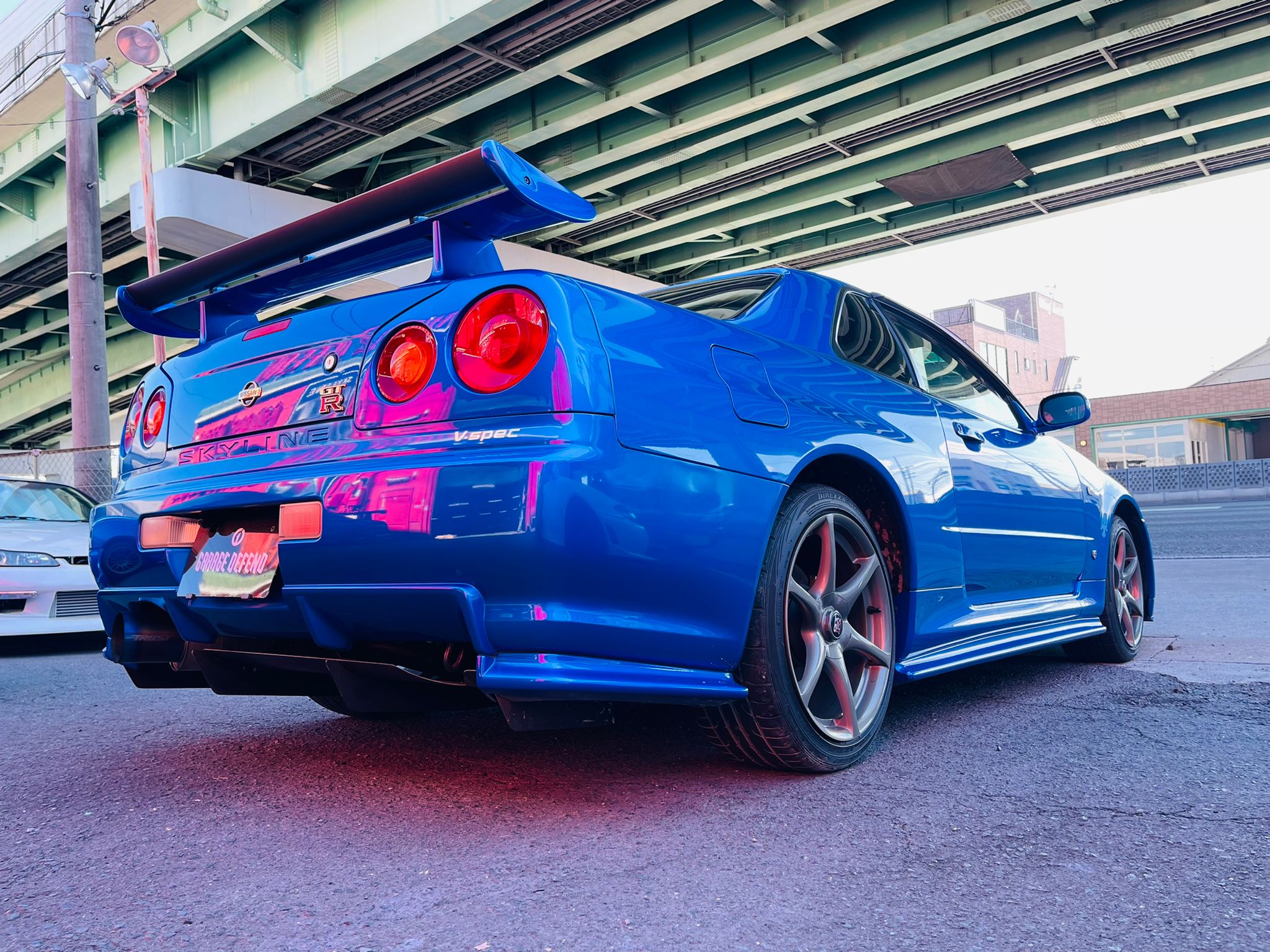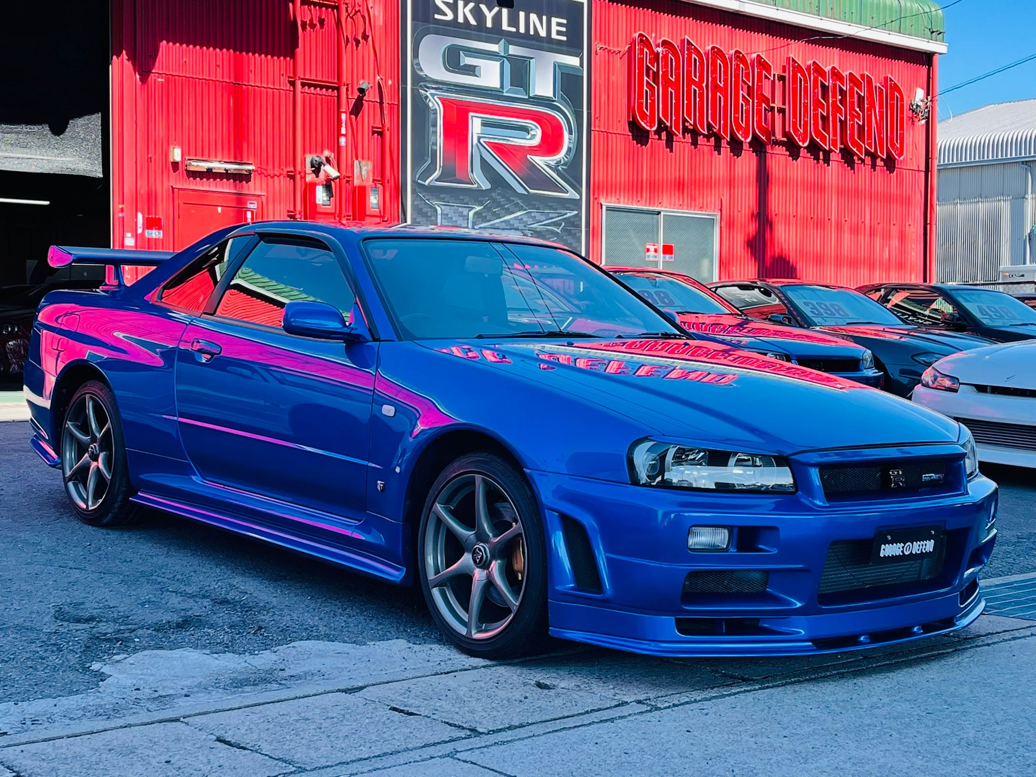 SOLD! Nissan Skyline GTR R34 VSPEC Bays Side Blue color for sale! Accident free and absolutely beautiful condition insdie out! It has only 44,994 original kilometers. Clean GTR R34 VSPECs like this is quite rare these days in Japan, and definitely a great investment to make for long term value growth. We have indoor storage with professioal maintenance available if you like to store the car at our shop until USA import legal. If you are interested in this GTR or any other car from Japan please reach out to us on Whatsapp at +8180 4677 9900 or by email at defendgarage@gmail.com