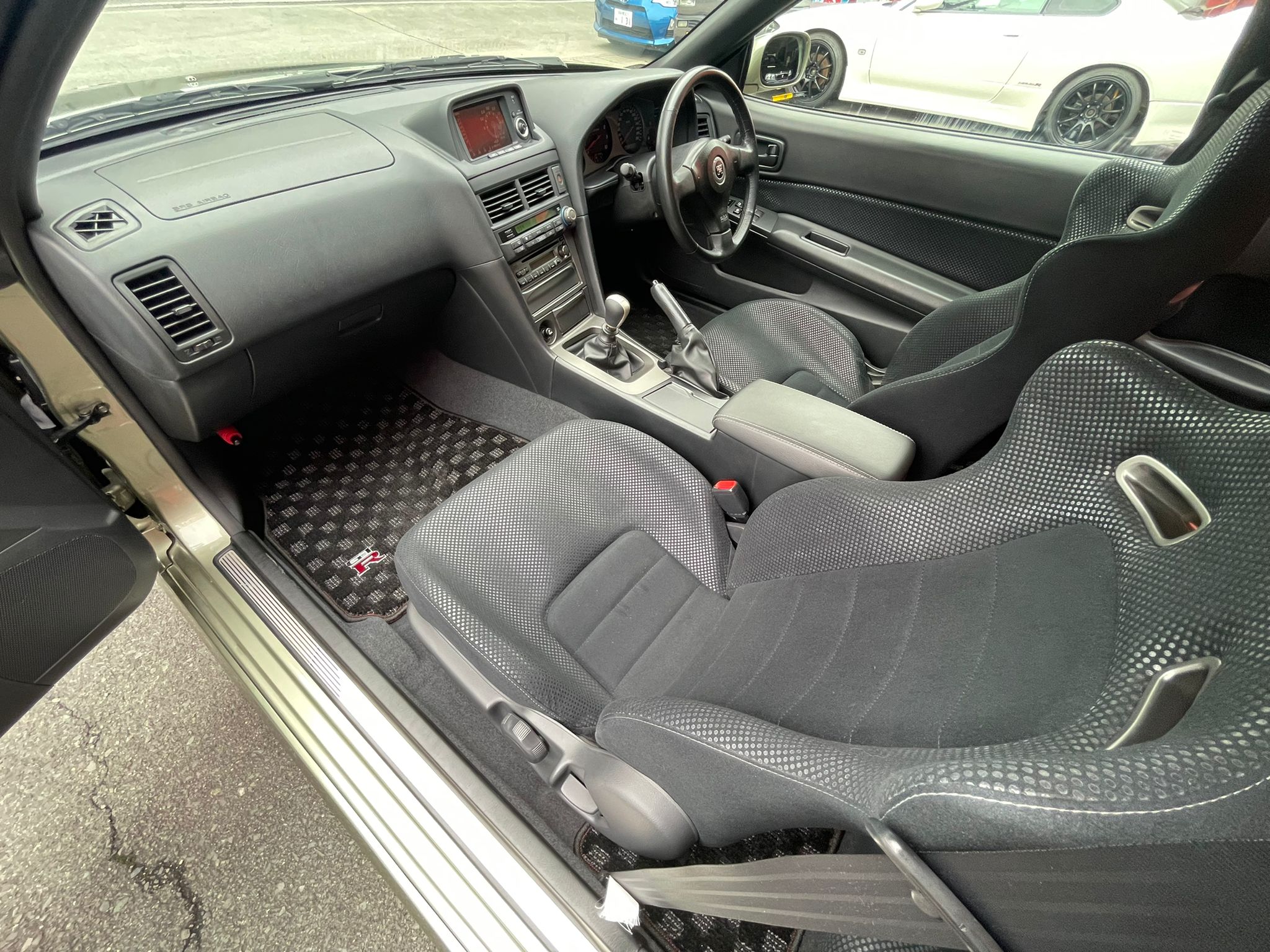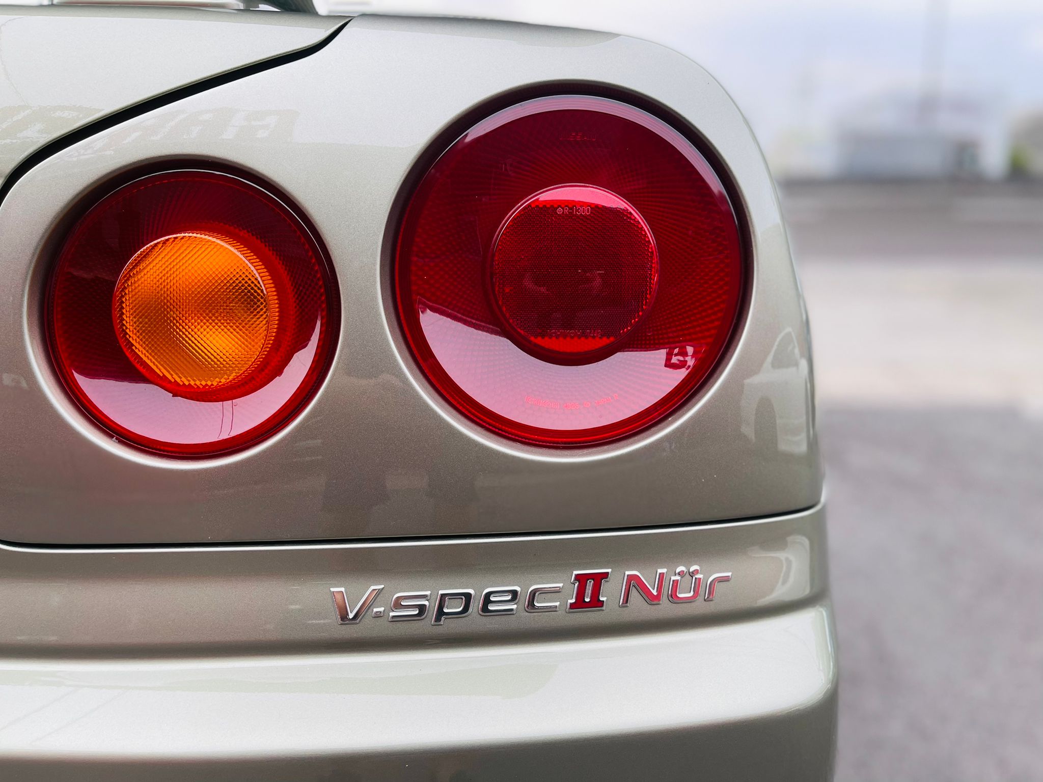 “V⋅SpecII Nür” and “M⋅Spec Nür” named after Nürburgring where GT-R cars were developed were manufactured in 2002. They were the limited models and the number of production was 1,000 each. The former was aimed at sprint races while the latter, with significantly flexible suspensions, at endurance races. Mounted for both models was the engine based on N1 specs with equalized weight balance of pistons and connecting rods, and its cylinder head cover was colored gold. This car is “M⋅Spec Nür” of the special pale gold color.