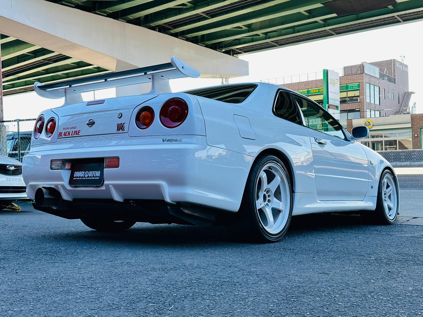 SOLD! Nissan Skyline GT-R R34 V-Spec for sale! No repair history, no rust issues. Absolutely stunning condition insdie out with an excellent performance! 93,102km (57,850 miles). Comes with highly thought after performance related upgardes! Early 1999 model, such clean and repair free, and especially VSPEC model Nissan Skyline GT-R R34s becoming extremely rare to find in Japan. If you are in the market for a clean GT-R R34, this is your chance and don't miss out! We have indoor storage available for USA clients who like to store the car with us at 300 USD per month rate. If you are intersted in this GT-R R34 VSPEC, please reach out to us on whatsapp at +8180 4677 9900 or by email at defendgarage@gmail.com