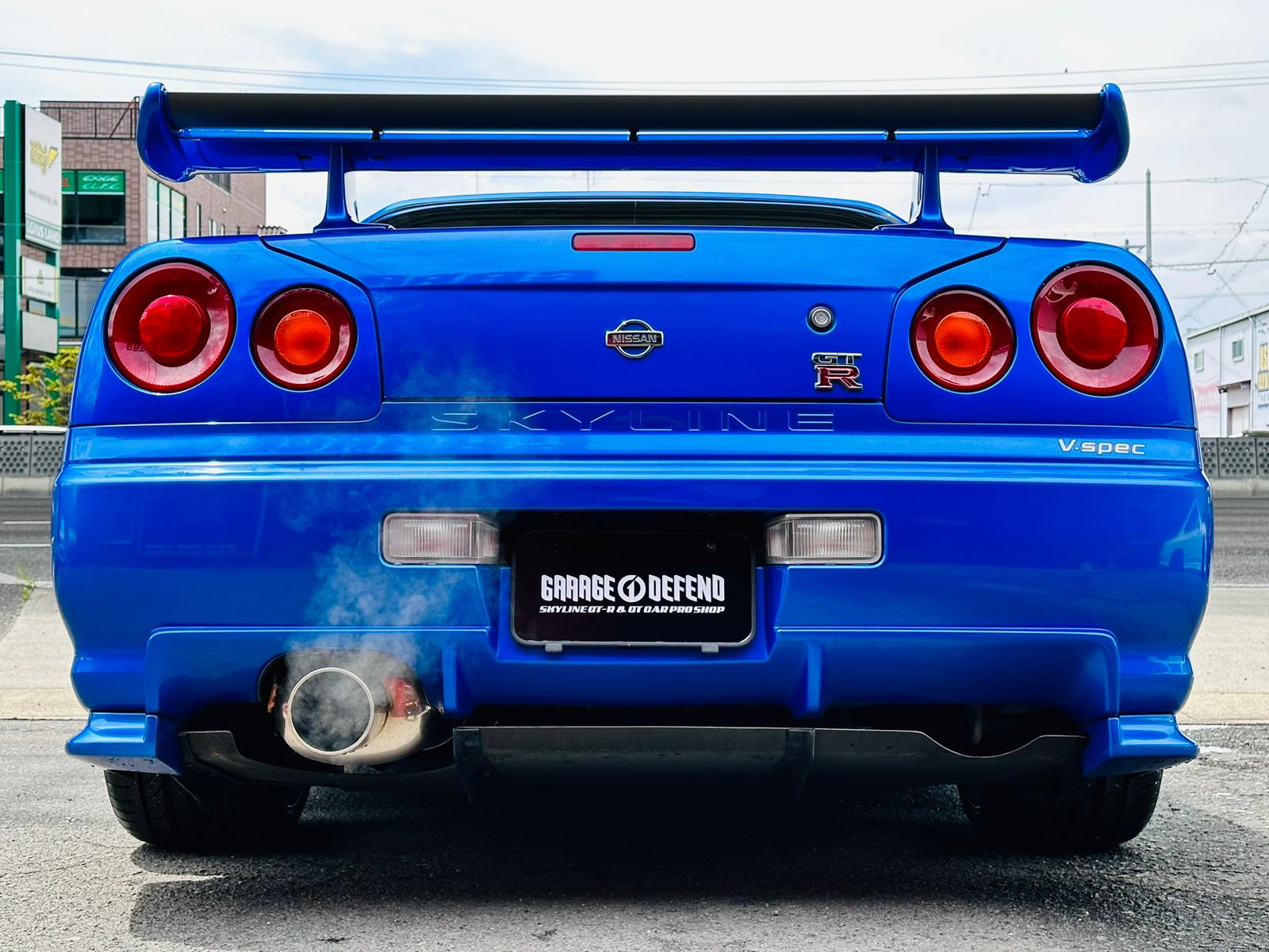 SOLD! Nissan Skyline GT-R R34 V-Spec available for sale. Flagship GT-R R34 Baysideblue color. Manufactured in Jully 1999. No repair history, no rust issues. The cluster has been swapped to NISMO 320 KPH cluster when it was 48 kilometers on August 7.1999. So currently total mileage of the car is 59,726 kilometers. (All works has been done by official Nissan) Absolutely stunning condition inside out with an excellent performance! Comes with all books, manuals, warranty card and compelte detialed maintenance notes/records since brand new! Such clean, early 1999 model, and especially in baysideblue color & VSPEC edition Nissan Skyline GT-R R34s becoming extremely rare to find in Japan. If you are in the market for a clean GT-R R34, this is your chance and don't miss out! If you are intersted in this GT-R R34 VSPEC, please reach out to us on whatsapp at +8180 4677 9900 or by email at defendgarage@gmail.com