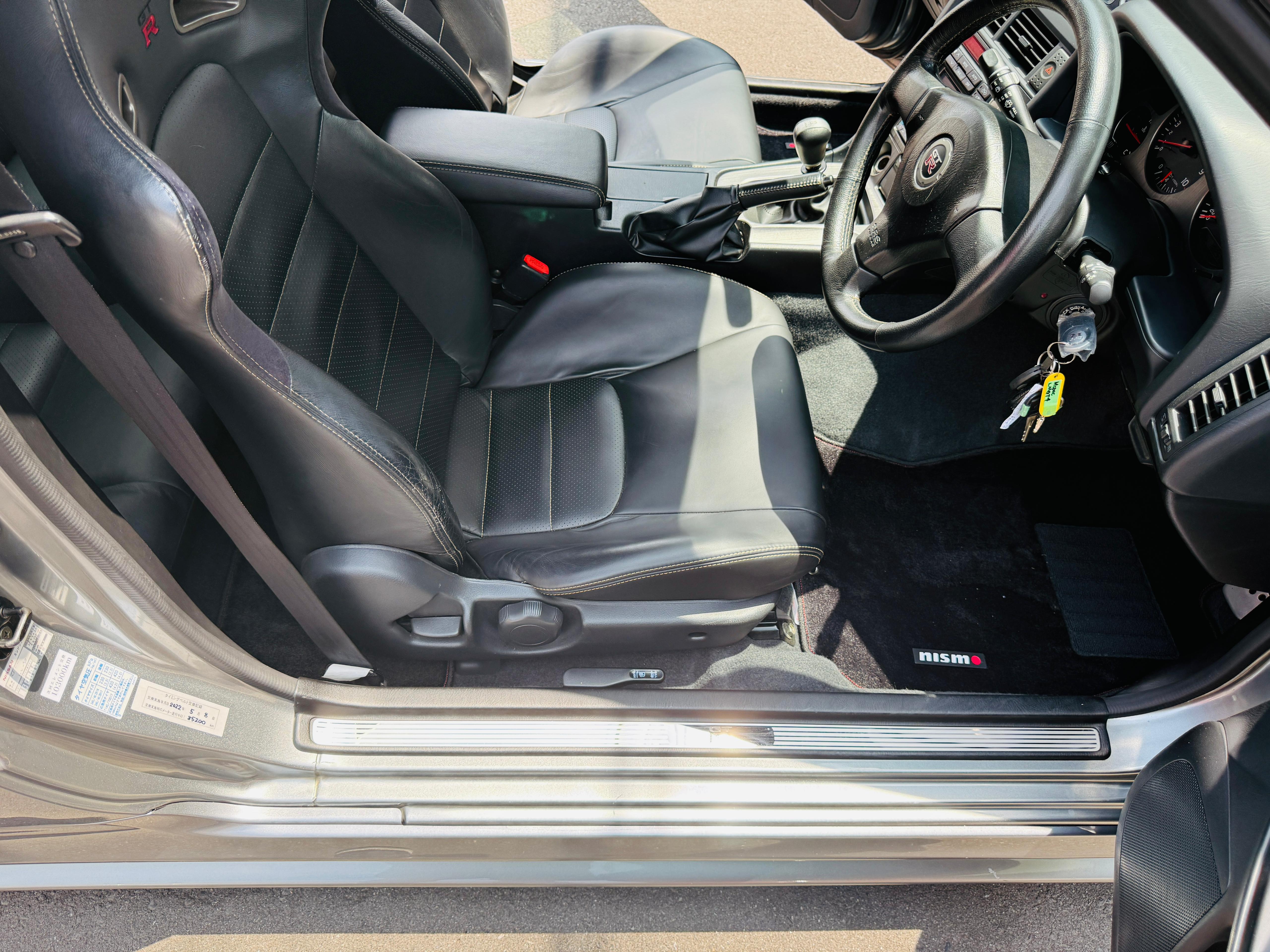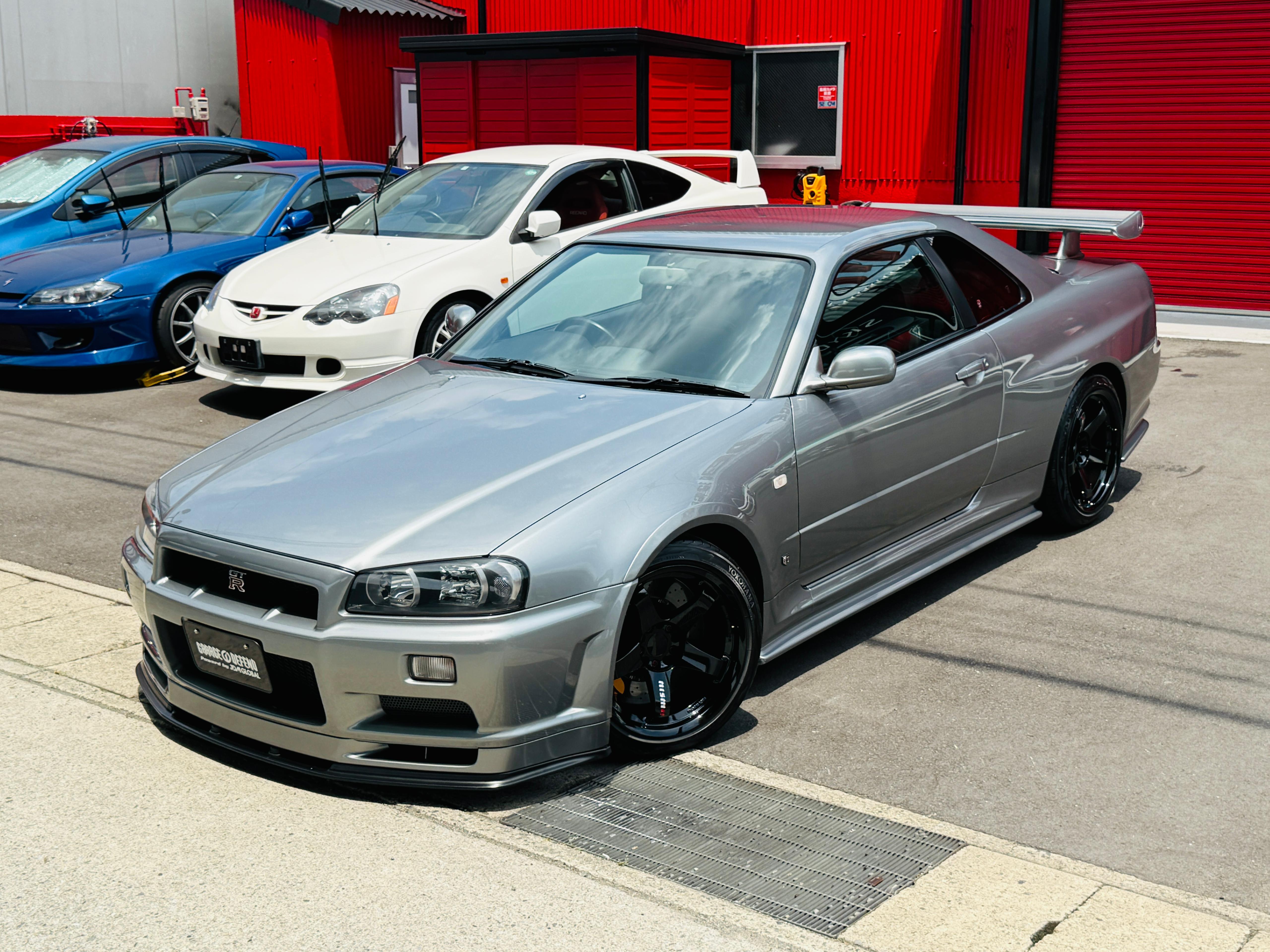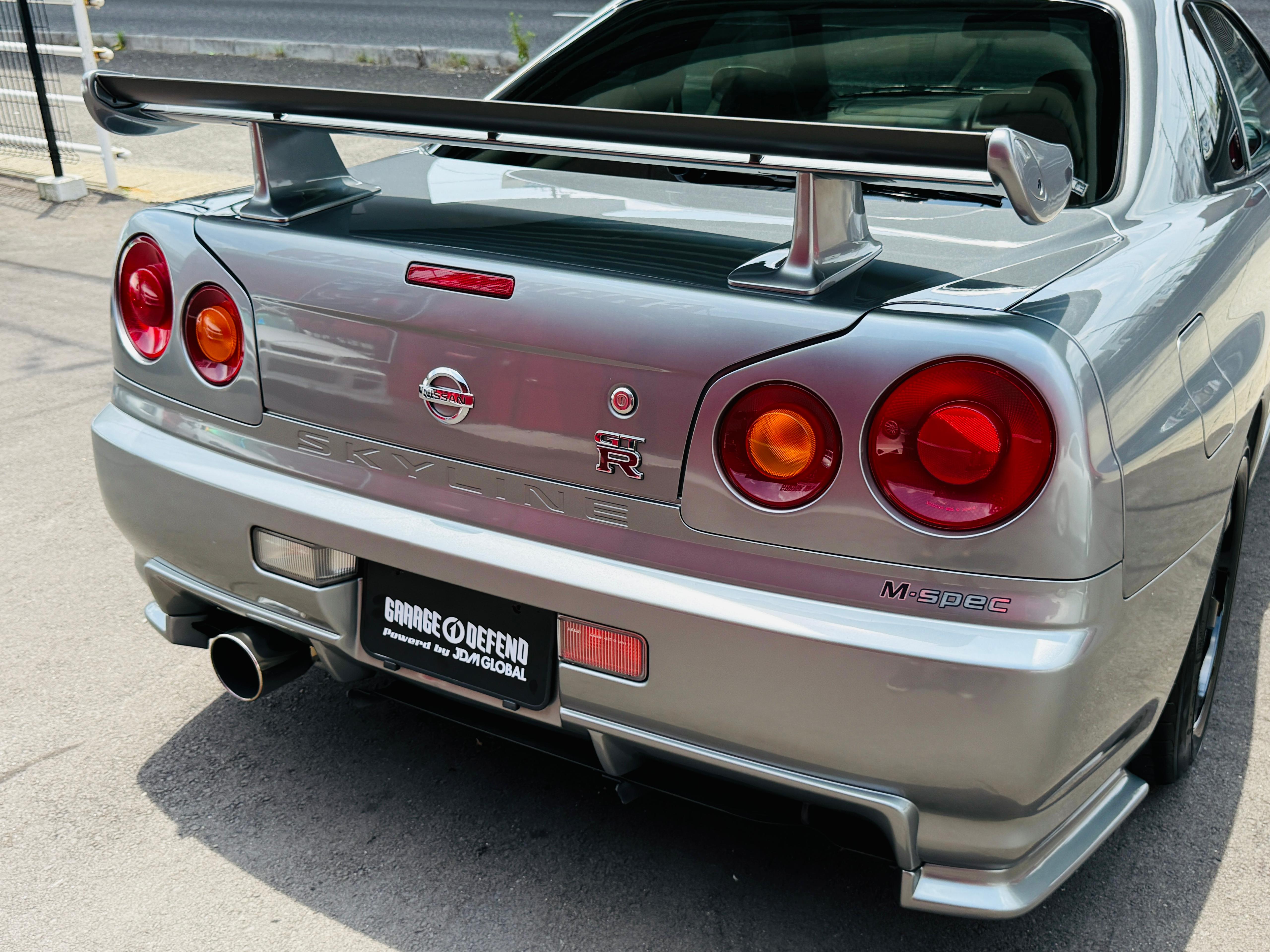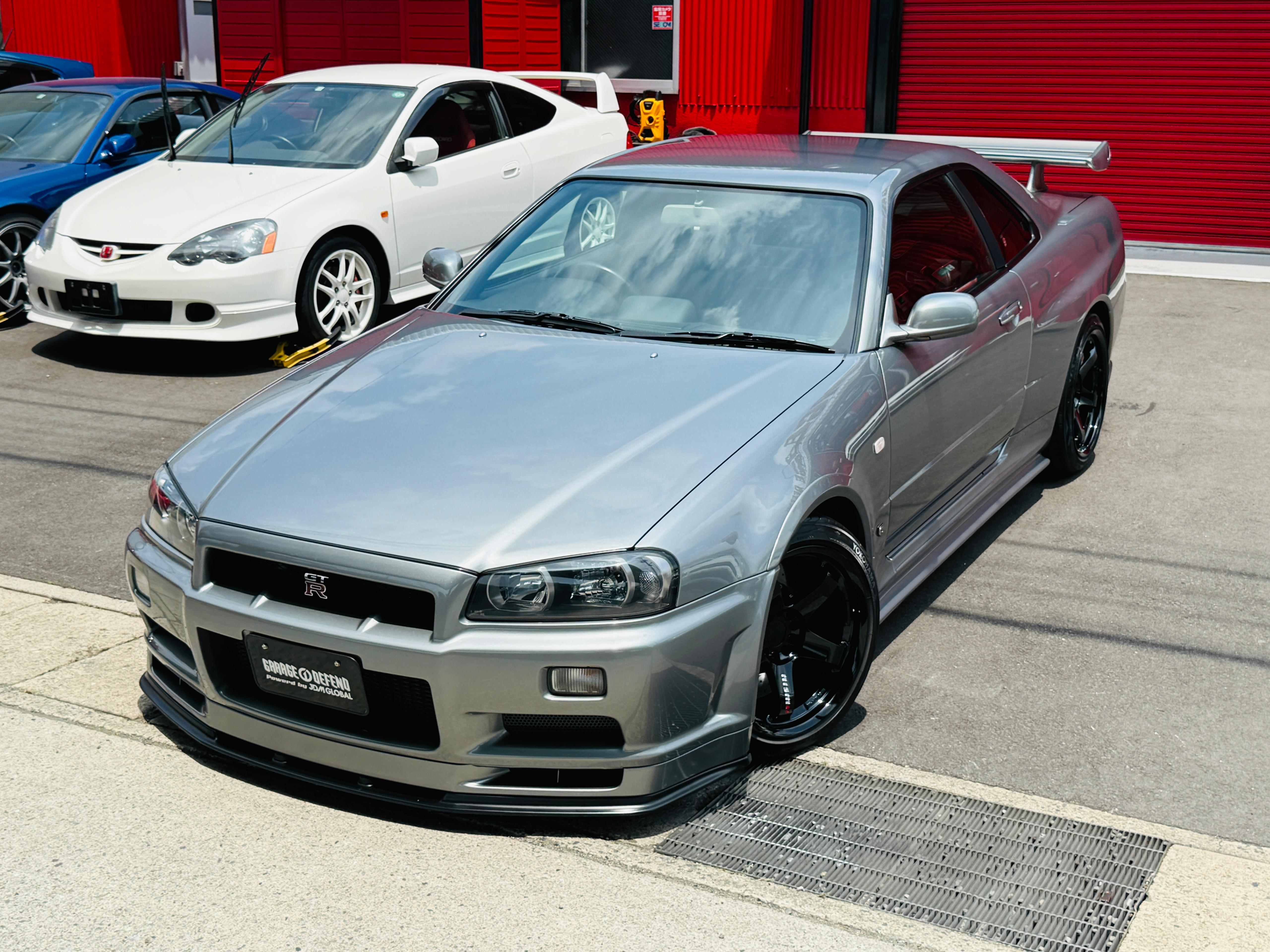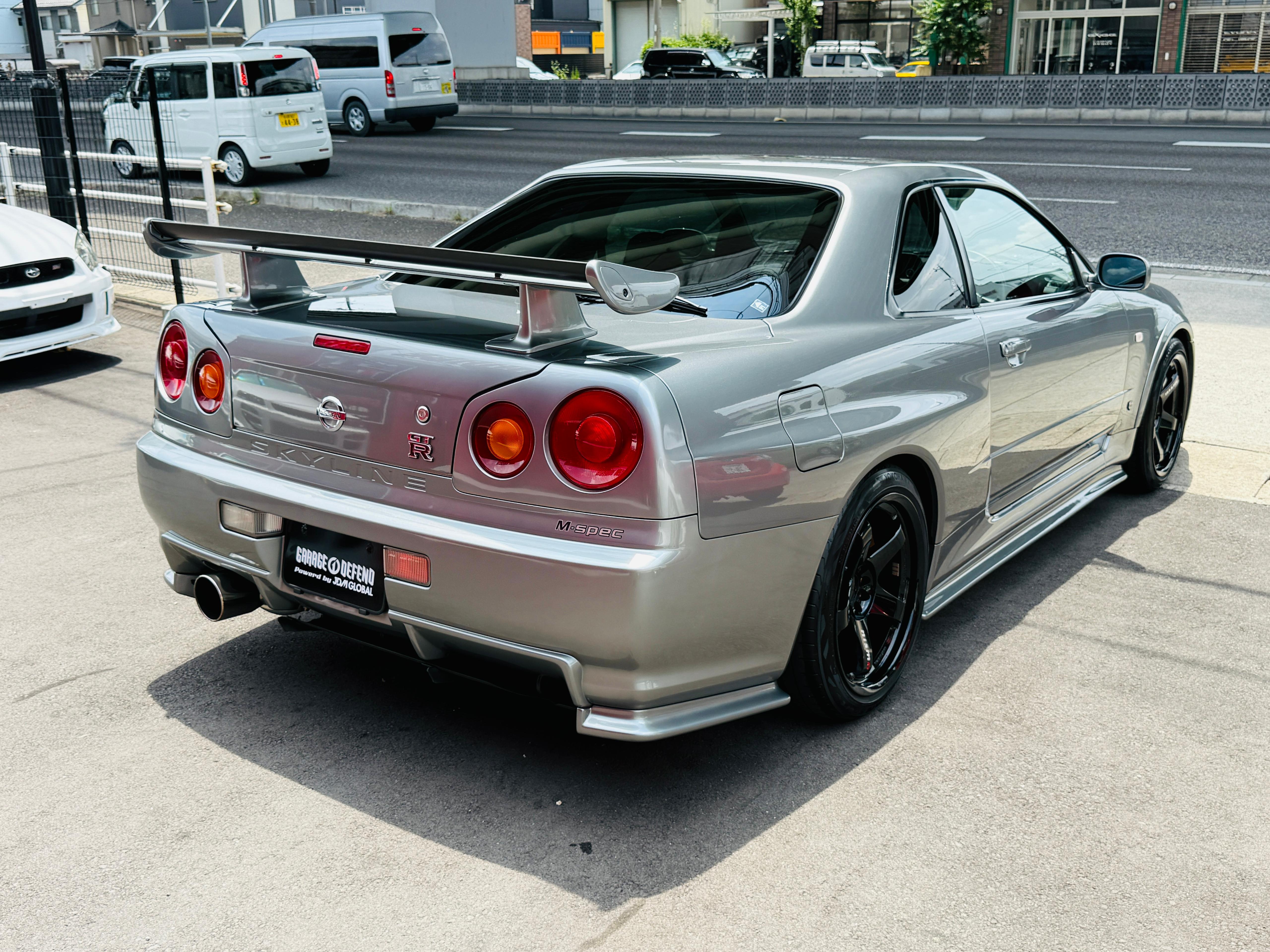 09.2002 Nissan Skyline GTR R34 M-Spec Sparkling Silver color (WV2) available for sale. Accident free, Exterior and interior is super clean. No any rust and mechanical issues. The cluster has been upgraded to Nur 300 KPH cluster by NISSAN (official certificate available) when the car was 7 km on its original cluster. So total mileage of the car is 103,496 kilometers. Clean GTR R34 Mspecs like this is extremely rare these days in Japan, and definitely a great investment to make for long term value growth. We have indoor storage with professional maintenance available if you like to store the car at our shop. If you are interested in this GTR or any other car from Japan please reach out to us on Whatsapp at +8180 4677 9900 or by email at defendgarage@gmail.com